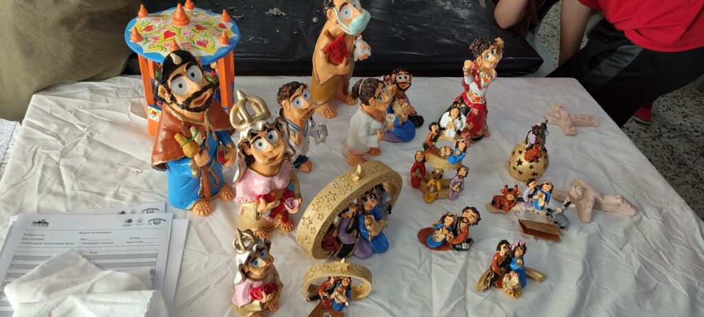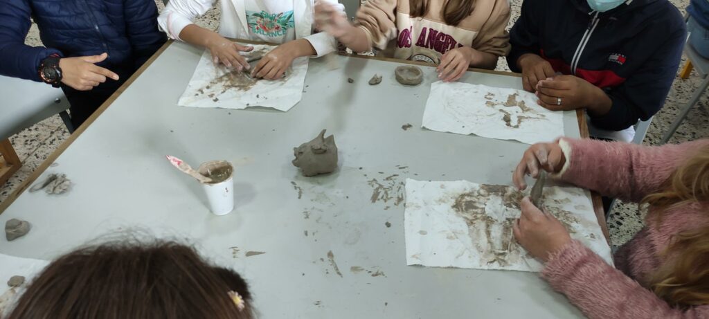 Os/as alunos/as aderiram entusiasticamente à atividade e deram asas à imaginação. Sob orientação do artesão experimentaram fazer modelagem do barro e criaram peças a seu gosto.