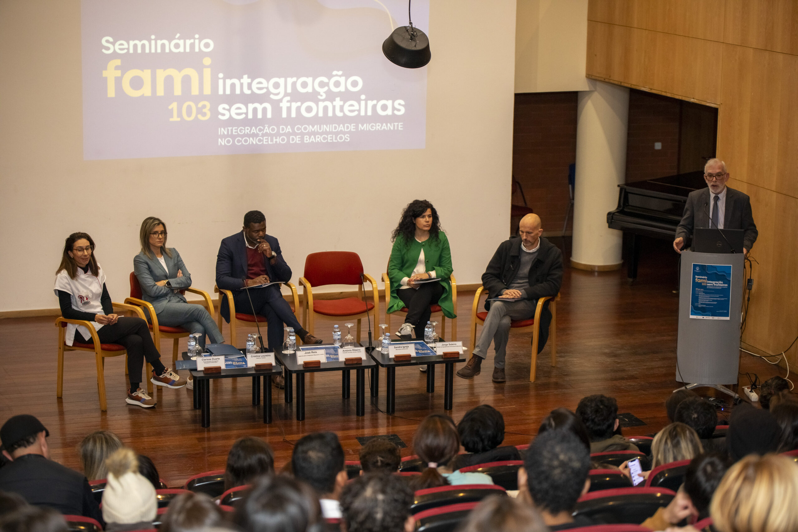 Na sessão, que decorreu no auditório da Biblioteca Municipal, Sandra Igreja apresentou os resultados do projeto, Clarisse Duarte, da Cruz Vermelha Portuguesa, abordou as estratégias para potenciar uma melhor integração da população migrante no concelho de Barcelos, Cristina Loureiro, da Valérius Têxteis, falou sobre a integração profissional da população migrante, e Jorge Saleiro, Diretor do Agrupamento de Escolas de Barcelos, dissertou sobre o tema diversidade e inclusão no Agrupamento que dirige.