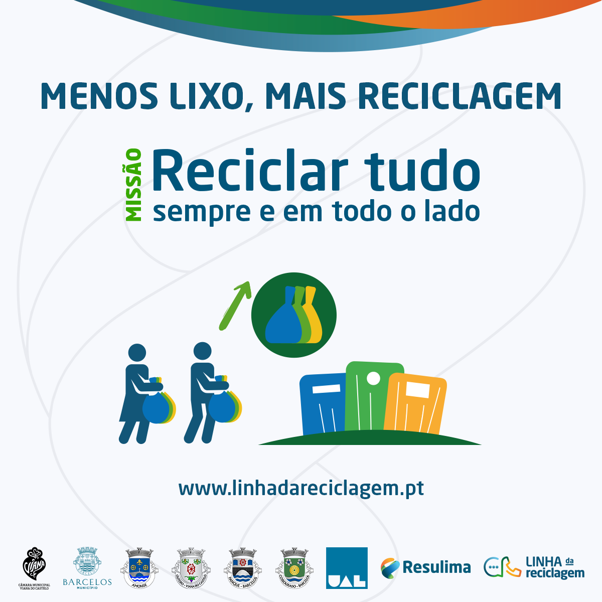 A Resulima e a Universidade Autónoma de Lisboa, em colaboração com a Câmara Municipal de Barcelos e de Viana do Castelo e com as Juntas de Freguesia de Panque, Cossourado, Amonde e Outeiro, estão a concretizar, entre abril e julho de 2022, o projeto piloto 'Menos Lixo, Mais Reciclagem'. O objetivo é analisar as motivações sociais não financeiras que levam os cidadãos a ter comportamentos ambientalmente corretos, nomeadamente a efetuar a separação de resíduos nas suas habitações e respetivo encaminhamento para reciclagem. No decorrer deste estudo, os cidadãos serão informados das quantidades de resíduos colocadas nos ecopontos localizados na sua freguesia, receberão informação específica sobre a sua atividade e terão acesso regular aos desempenhos alcançados. Desta forma, valorizam os resíduos e promovem a sua transformação em recursos - só têm de reciclar tudo, sempre e em todo o lado! Para apoiar a informação aos cidadãos, está disponível a Linha da Reciclagem, um serviço de atendimento gratuito a todos os cidadãos.