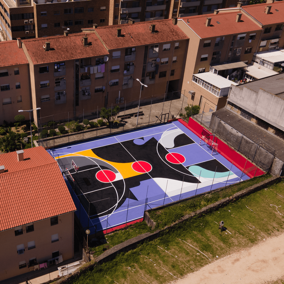 Situados no interior da urbanização, aqueles espaços foram objeto de uma "intervenção, com artistas de Arte Urbana", que incluiu repavimentações, pinturas, e instalação de equipamentos desportivos para a prática de Basquetebol e Futebol de 5.
