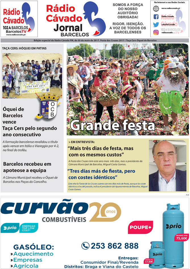 Além de entrevistas a entidades, associações e empresários do concelho e relatos do que de mais importante aconteceu na Festa das Cruzes, o jornal da Rádio Cávado traz ainda um poster do Óquei de Barcelos.