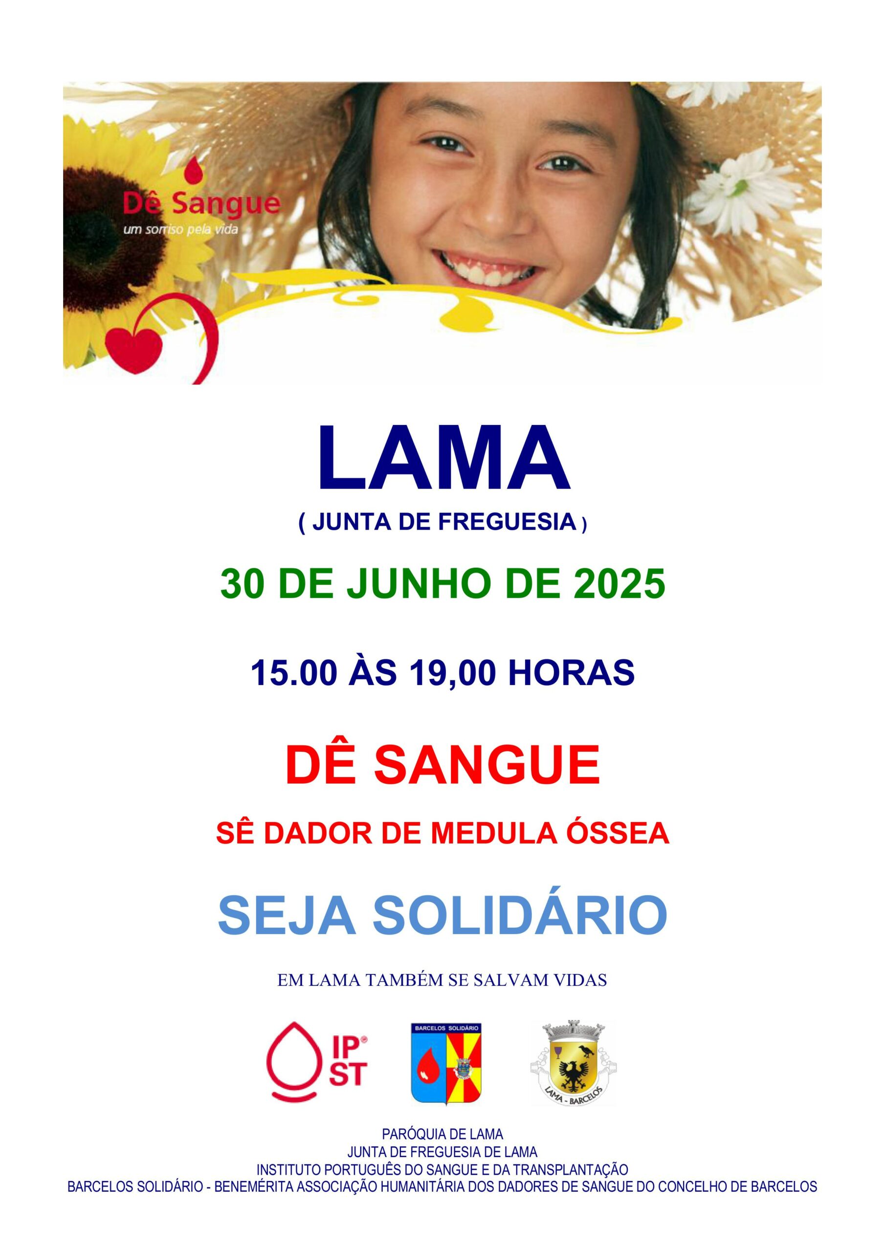 - dia 30 de Junho - Lama, na Junta de Freguesia, das 15,00 às 19,00 horas.