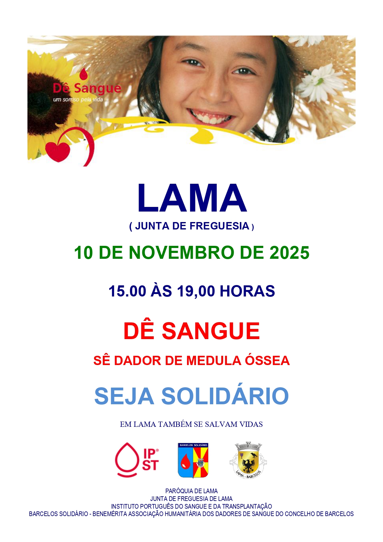 - dia 10 de Novembro - Lama, na Junta de Freguesia, das 15,00 às 19,00 horas.
