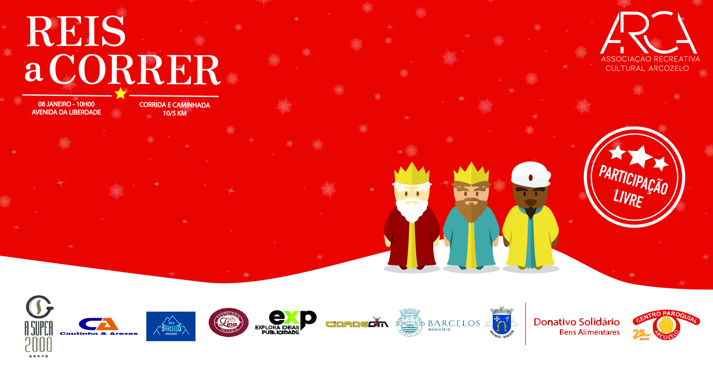 A ARCA promove a 4º edição do Reis a correr, uma atividade solidária sem cariz competitivo onde as pessoas como forma de inscrição trazem bens alimentares que serão entregues ao Centro Social e Paroquial de Arcozelo.
