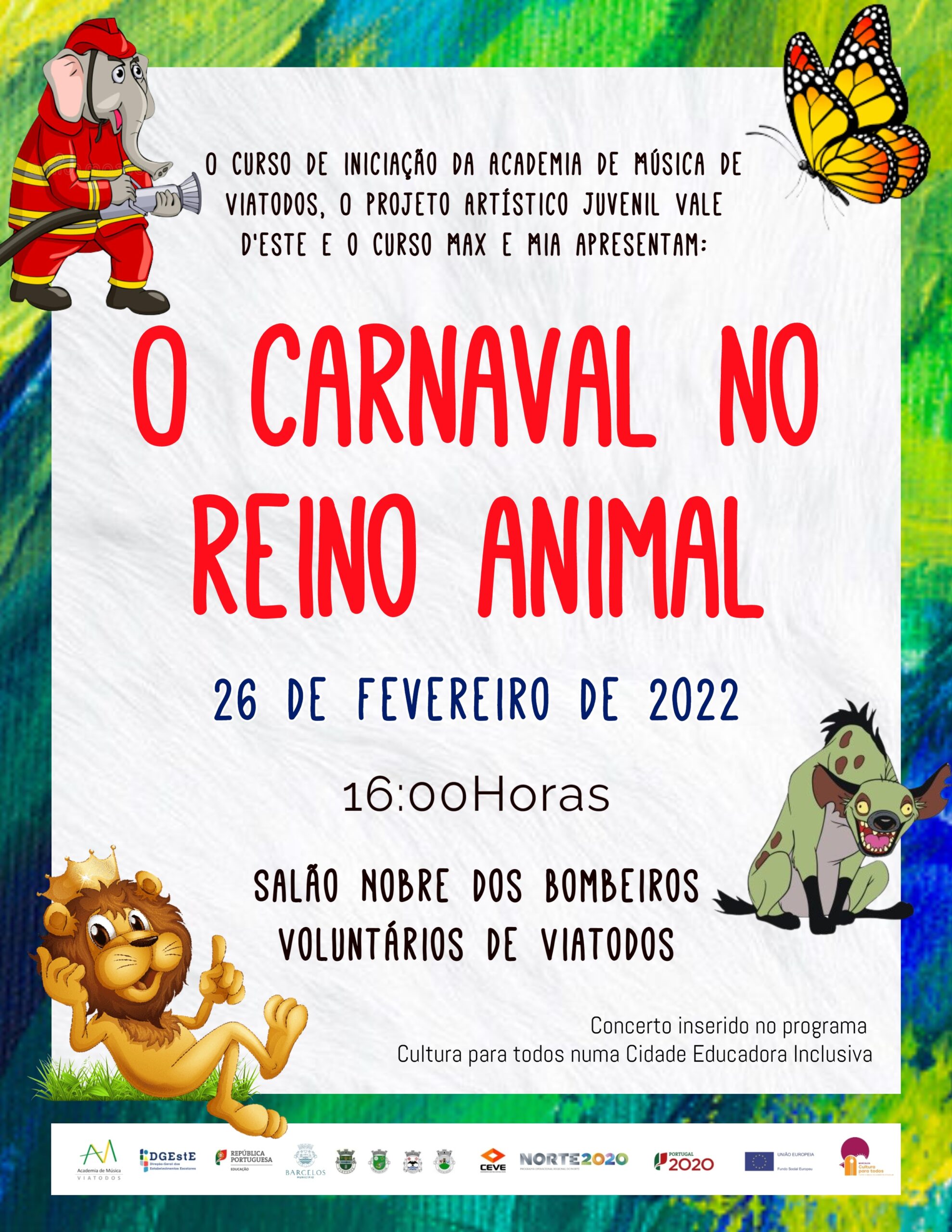 No âmbito do programa Cultura para Todos numa Cidade Educadora Inclusiva, realiza-se, no próximo sábado, pelas 16:00h, no Salão dos Bombeiros Voluntários de Viatodos, um Concerto de Carnaval que une o talento do Curso de Iniciação da Academia de Música de Viatodos, aos Max & Mia, e no qual também participam os alunos integrantes do Projeto Artístico Juvenil Vale D'Este.