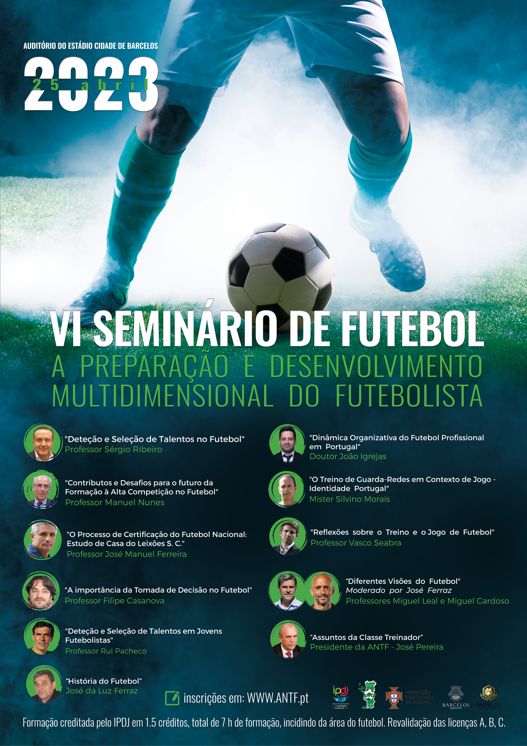 O evento será creditado pelo IPDJ com 1.5 créditos com total de 7h de formação, incidindo da área do Futebol.