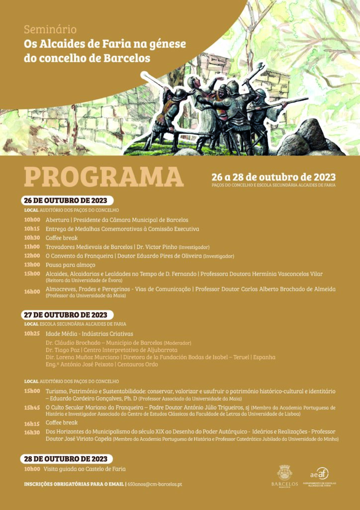 O Município de Barcelos vai realizar o Seminário Internacional «Os Alcaides de Faria na Génese do concelho de Barcelos», nos dias 26, 27 e 28 de outubro, no âmbito das Comemorações dos 650 anos do Feito dos Alcaides de Faria. A iniciativa conta com a participação de uma dezena de especialistas nas áreas do Património cultural e do Turismo sustentável.