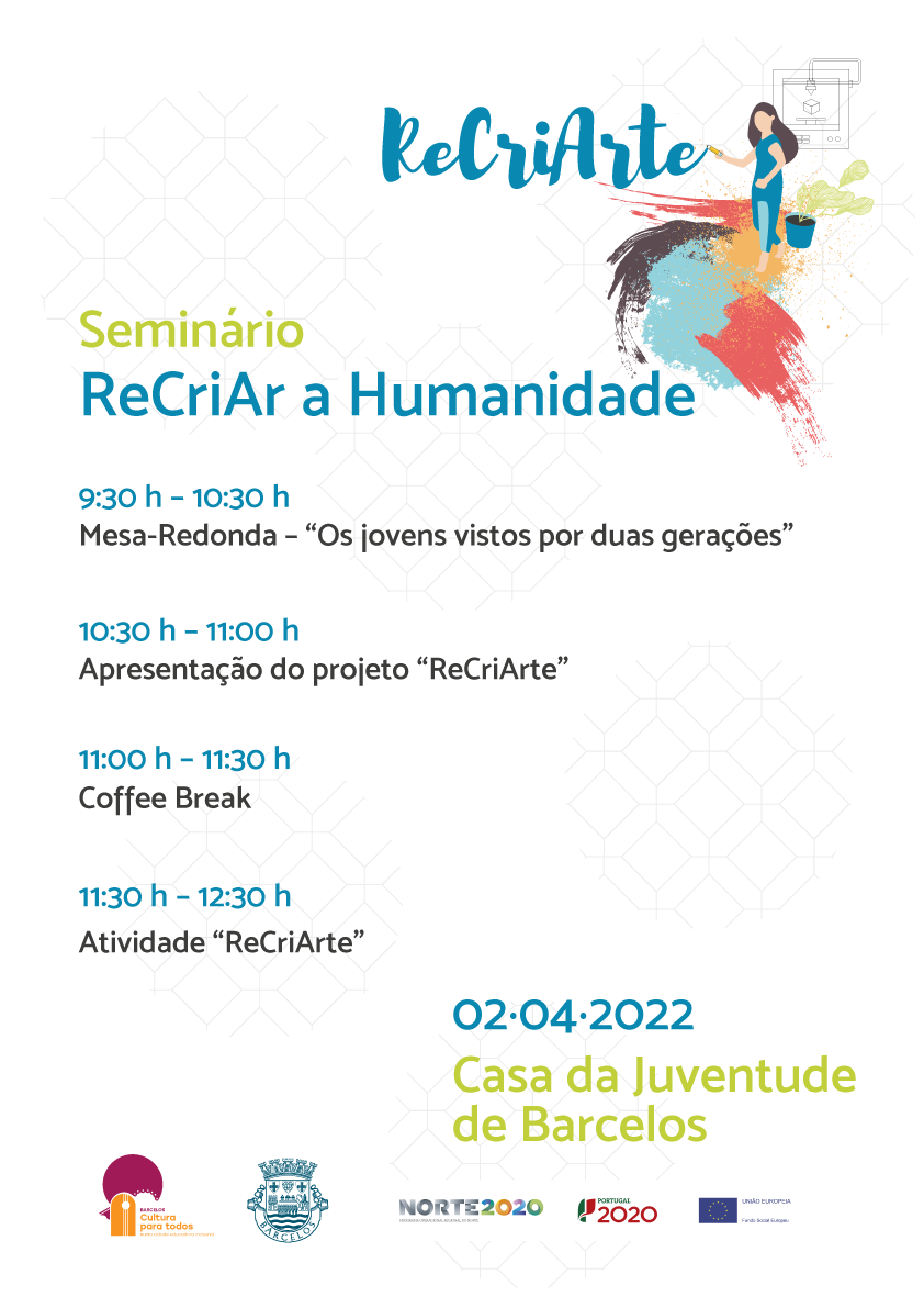 Realiza-se no próximo dia 2 de abril, entre as 9h30 e as 12h30, na Casa da Juventude de Barcelos, o Seminário "Recriar a Humanidade", uma ação que faz parte do "Programa Cultura para todos numa cidade educadora inclusiva", promovido pelo Município de Barcelos e cofinanciado pelo Fundo Social Europeu, através do programa Norte 2020.