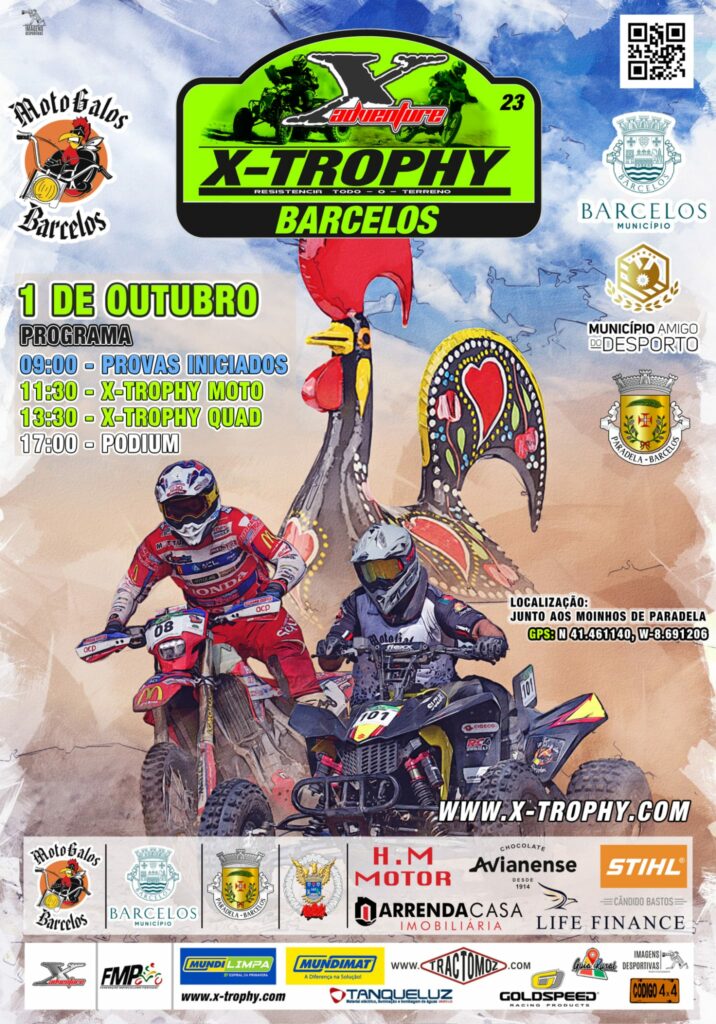 Em prova vão estar cerca de 150 pilotos, entre os quais os líderes da classificação, oriundos de todo o país e integrados nas três disciplinas (SSV, Quad e Moto). O Troféu X-Trophy Barcelos 2023 acontece domingo, dia 1 de outubro, a partir das 9h00.