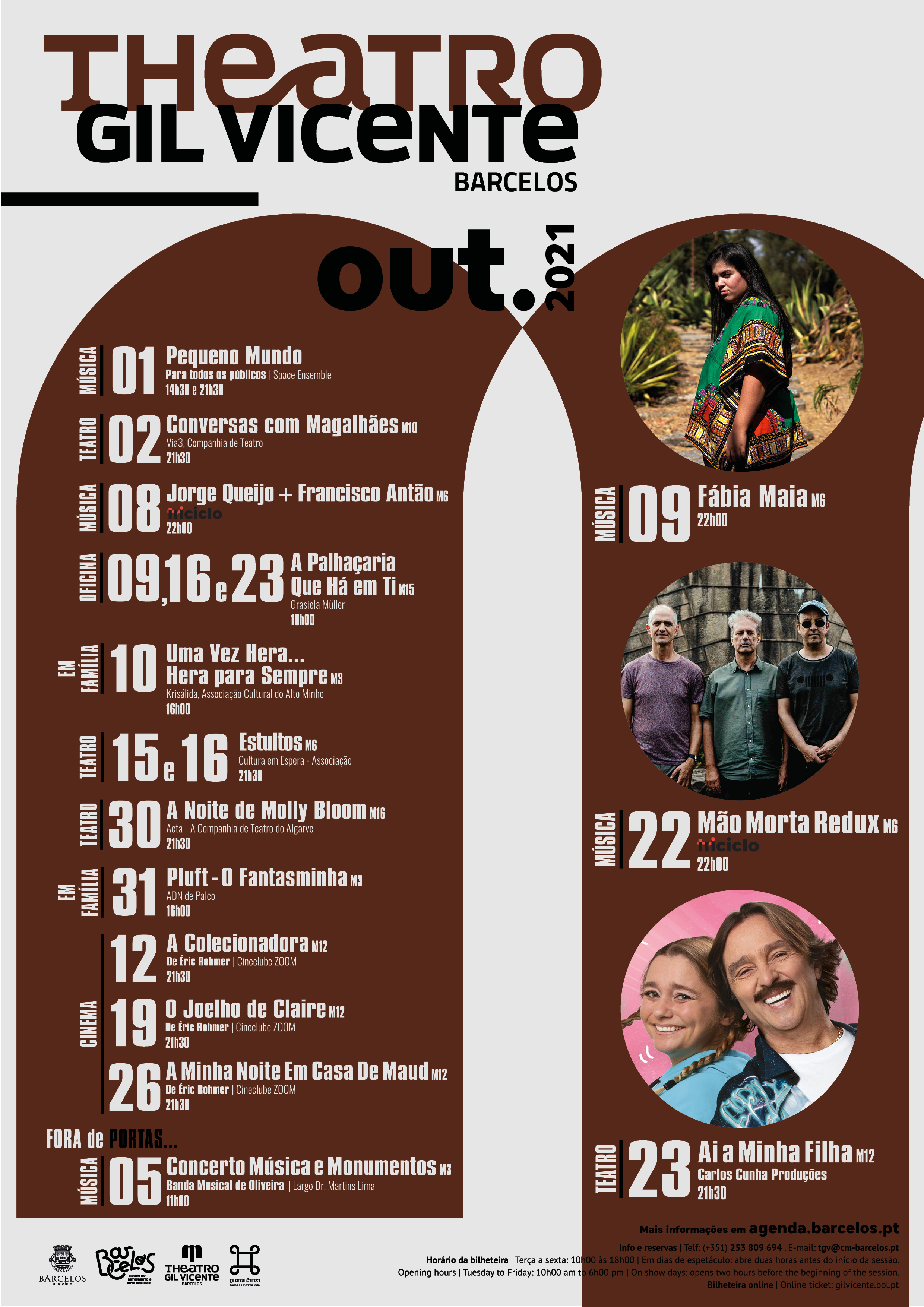 O Theatro Gil Vicente apresenta, no mês de outubro, uma programação diversificada com teatro, cinema, oficinas de criação e música.