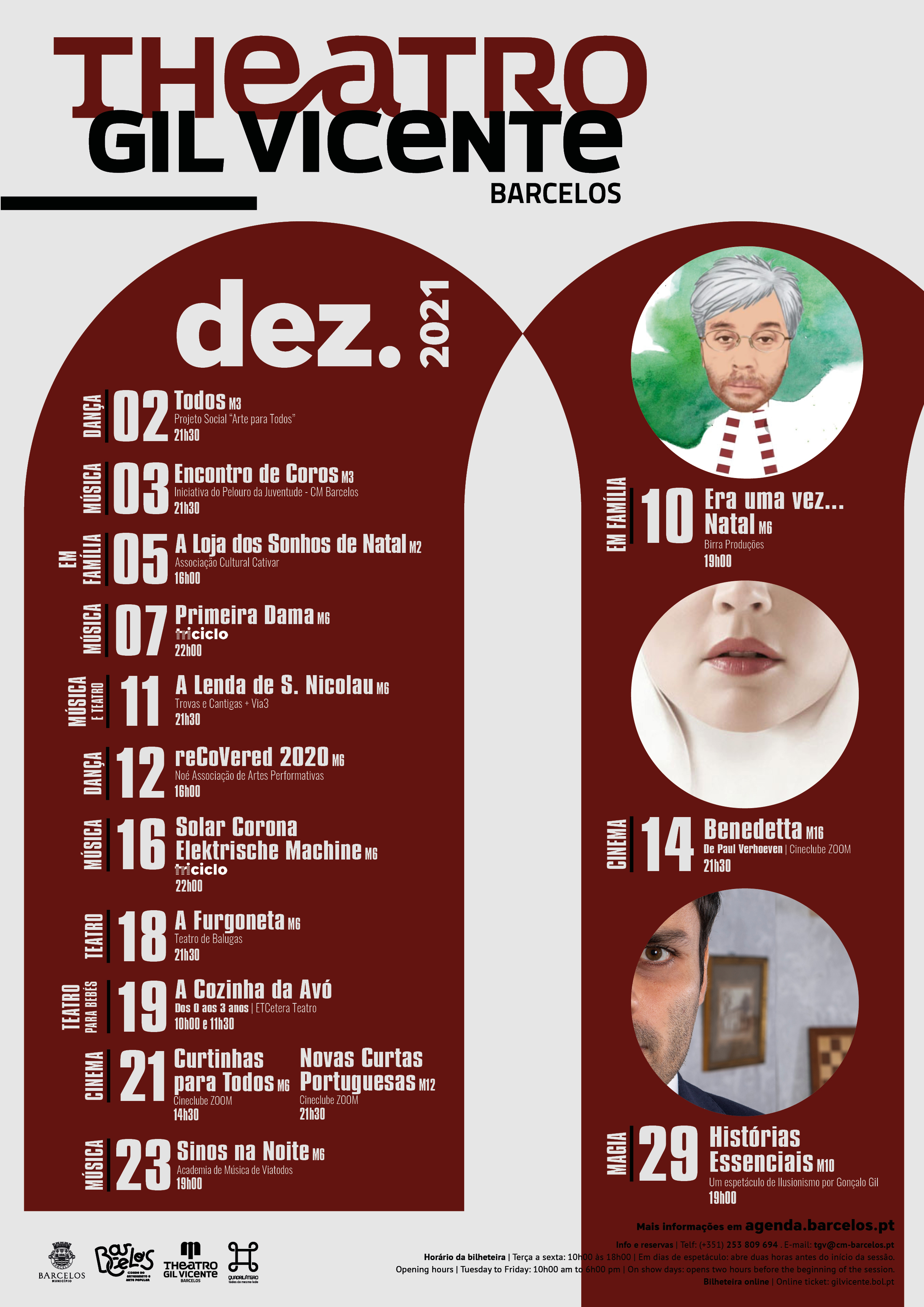 A rubrica "Em família no TGV" reserva a tarde de domingo, dia 5, às 16h, para a peça "A Loja dos Sonhos de Natal", pela Associação Cultural Cativar. Ainda, na mesma rubrica, no dia 10, às 19h, a tela do Gil Vicente estará reservada ao filme "Era uma vez...Natal", pela Birra Produções.