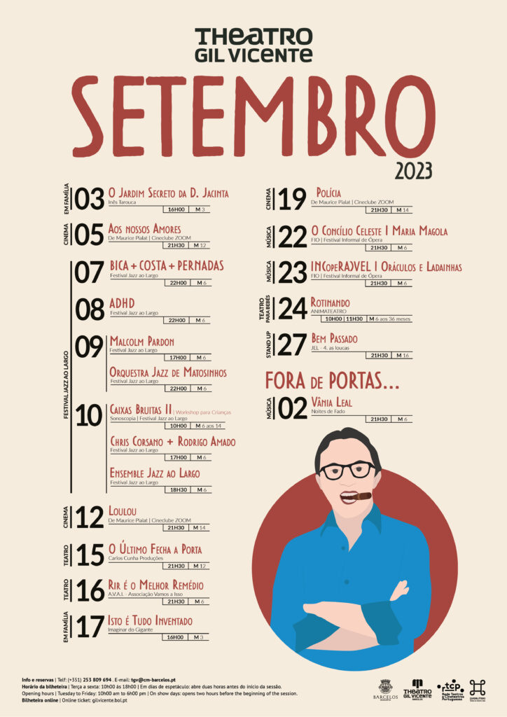 Com a chegada de setembro, regressam as sessões de humor. No dia 27, às 21h30, o humorista JEL apresenta o espetáculo de stand-up comedy "Bem Passado", o seu primeiro solo de stand-up comedy, no qual se apresenta despido de qualquer personagem, a partilhar divertidas teorias, sarcásticas observações da atualidade e suculentas histórias de bastidores que atravessam os seus mais de 20 anos de carreira. A sessão tem um custo de 10,00€.