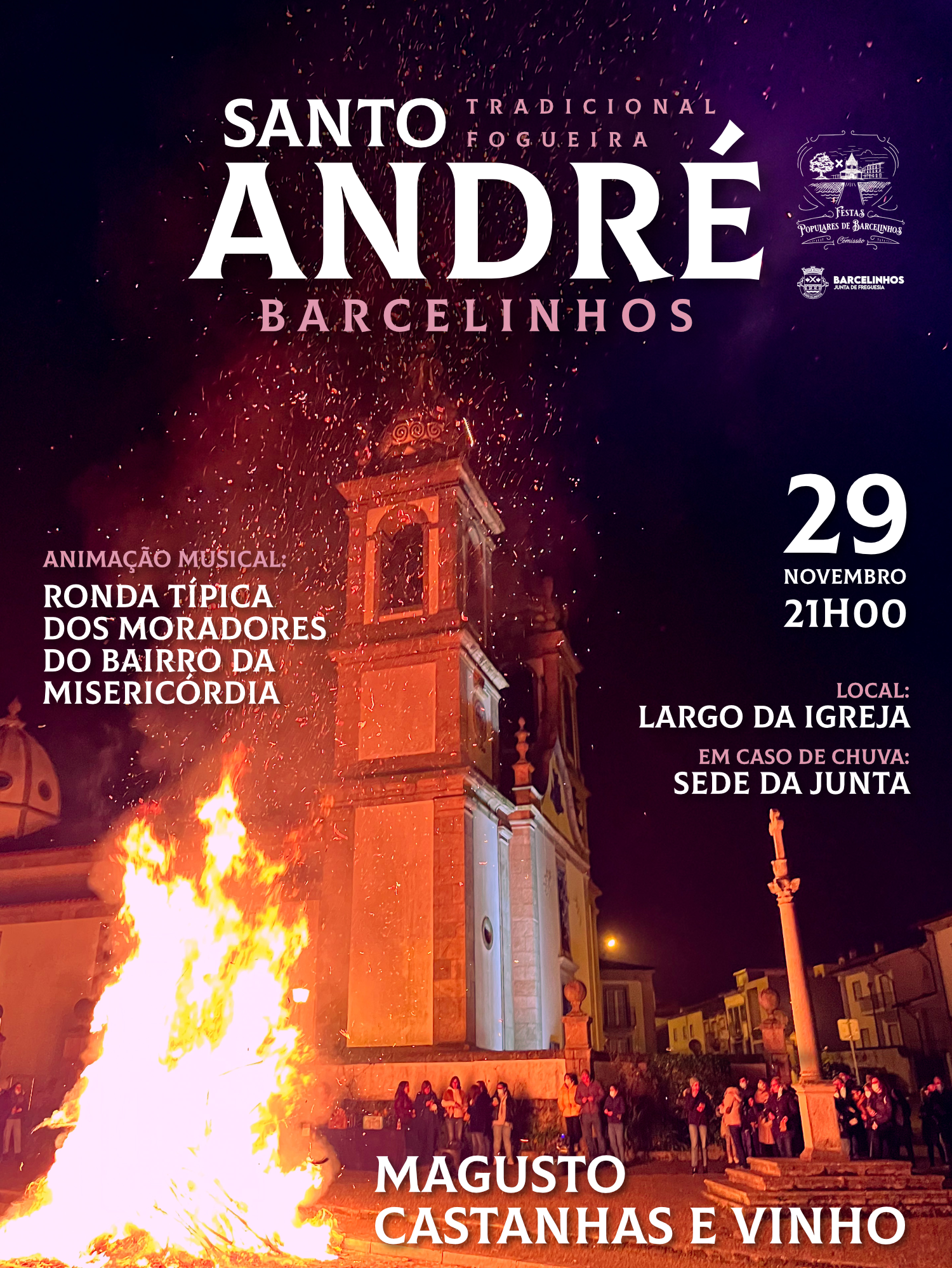 A Comissão das Festas Populares de Barcelinhos, realiza, no próximo dia 29 de Novembro às 21 horas, a Tradicional Fogueira de Santo André em Homenagem ao Padroeiro de Barcelinhos.