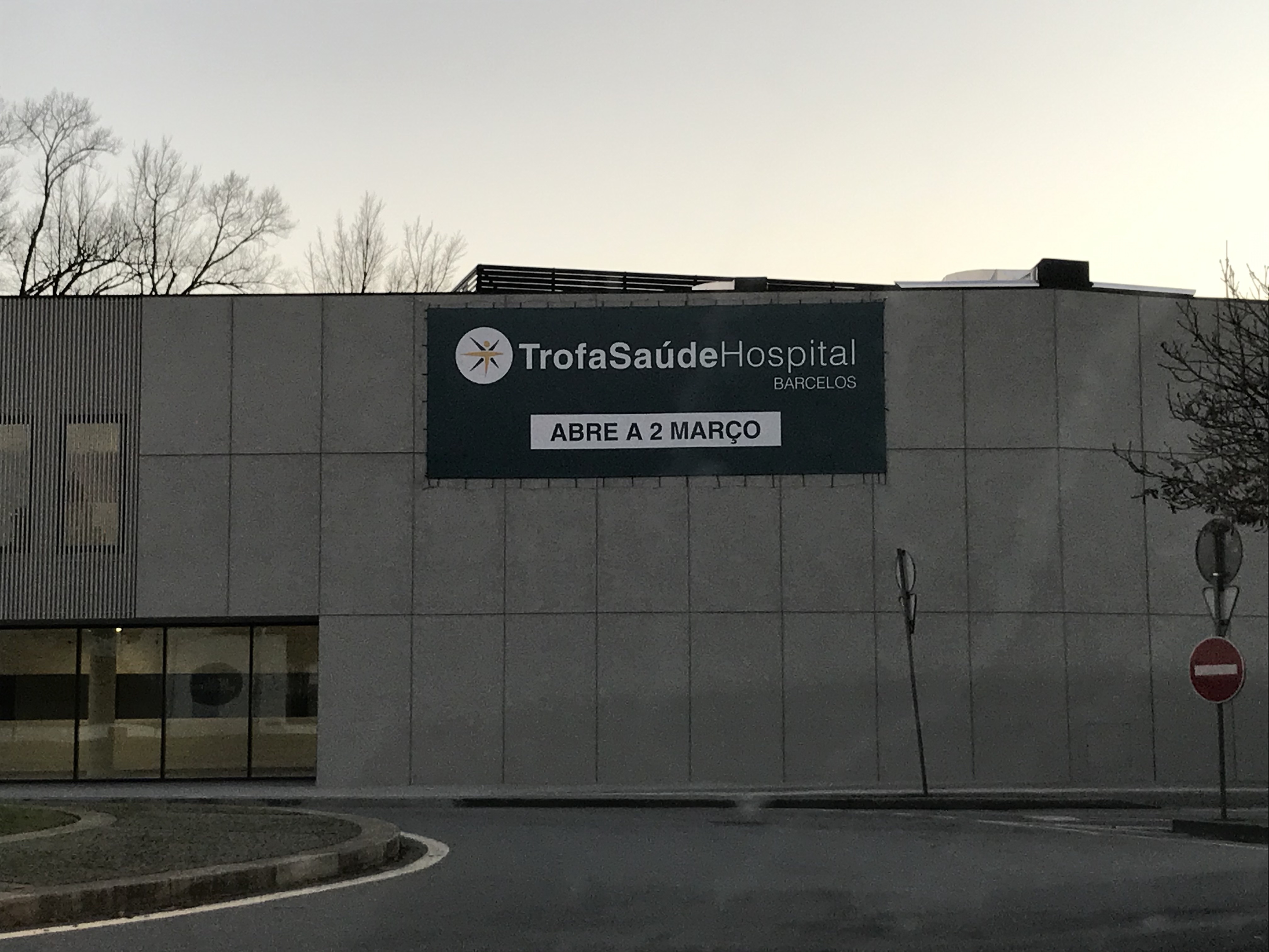 Com uma grande tarja, no edifício construído junto ao Parque da Cidade de Barcelos, o novo hospital privado vai abrir a 2 de março de 2020.