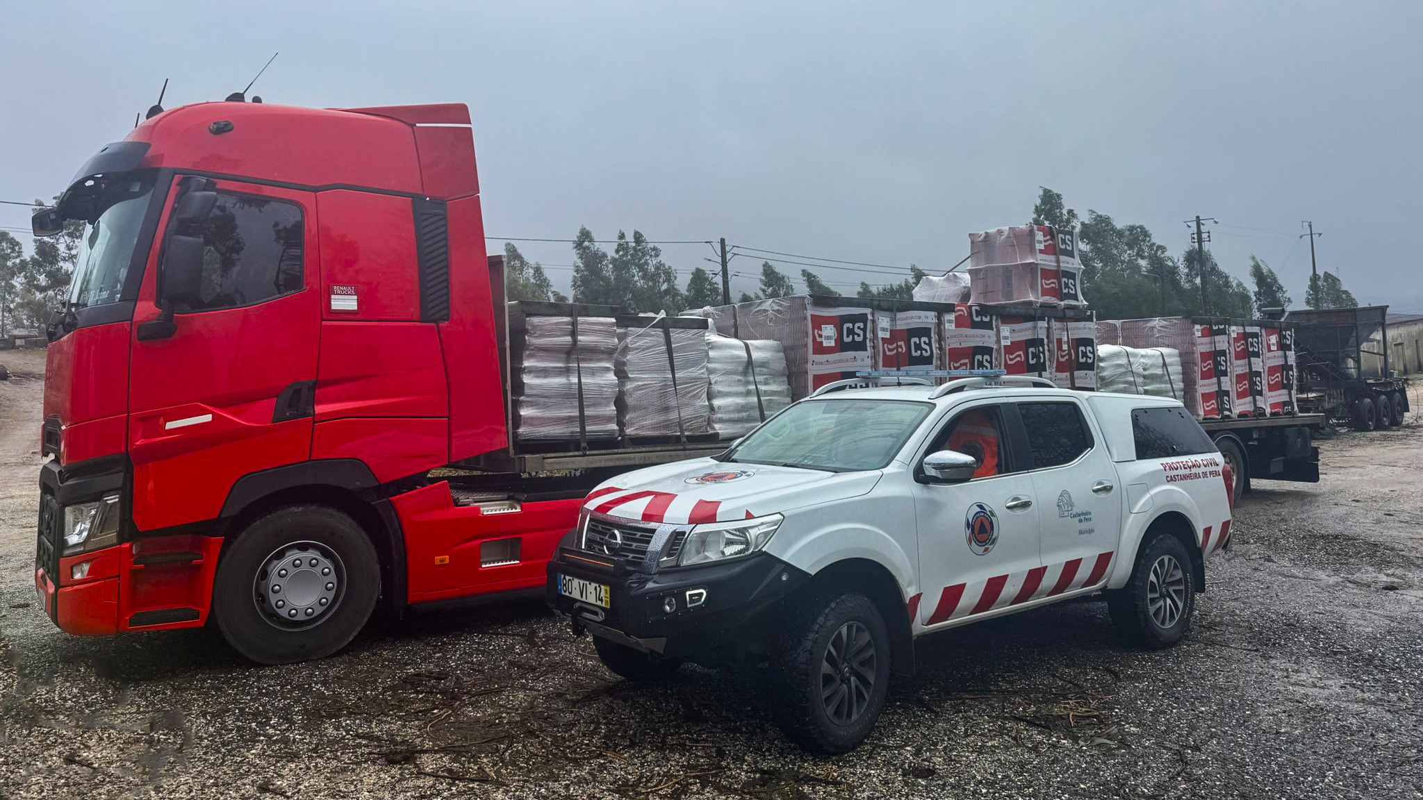O carregamento integrou telhas, cumeeiras, cruzetas, rufos e espuma isolante, materiais essenciais à recuperação de habitações danificadas. Estes bens foram entregues ao Serviço Municipal de Proteção Civil de Castanheira de Pera, entidade responsável pela sua distribuição junto das famílias mais necessitadas daquele concelho.