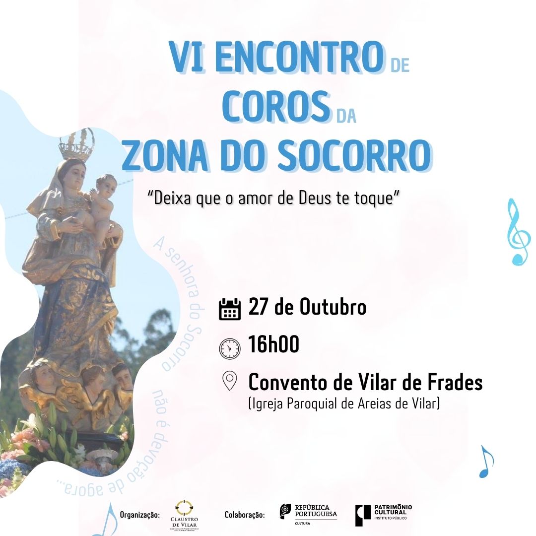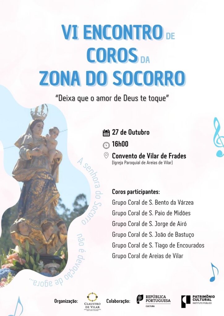 Realiza-se no próximo dia 27 de outubro, pelas 16h00, na Igreja Paroquial de Areias de Vilar - Barcelos, a sexta edição do Encontro de Coros da Zona do Socorro, desta vez com o tema "Deixa que o amor de Deus te toque".