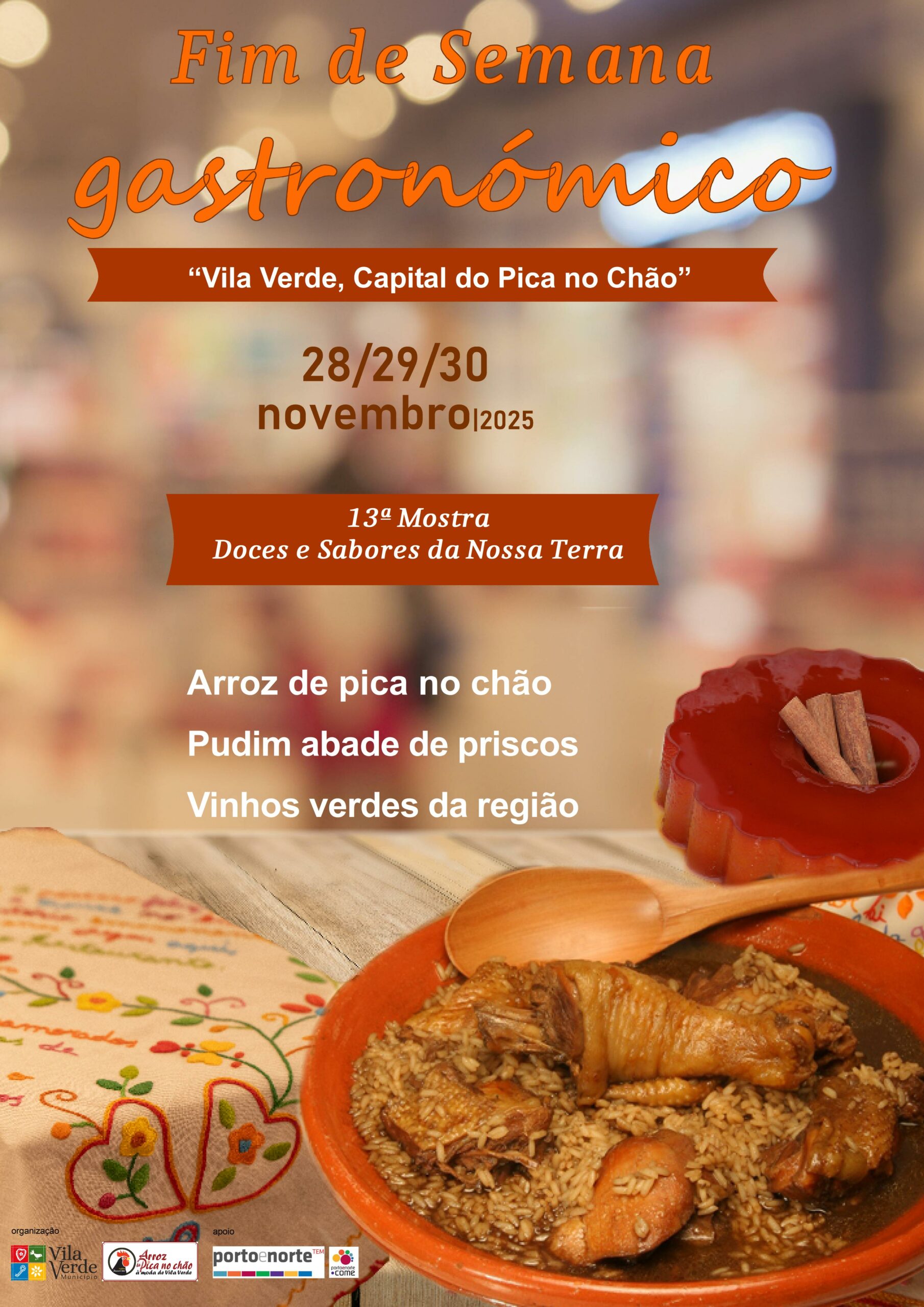 O concelho de Vila Verde prepara-se para receber, já a partir desta sexta-feira, mais uma edição do Fim de Semana Gastronómico, evento integrado no roteiro promovido pela Entidade Regional de Turismo do Porto e Norte. A iniciativa destaca duas das mais emblemáticas iguarias locais: o tradicional Arroz de Pica no Chão e o inconfundível Pudim Abade de Priscos.