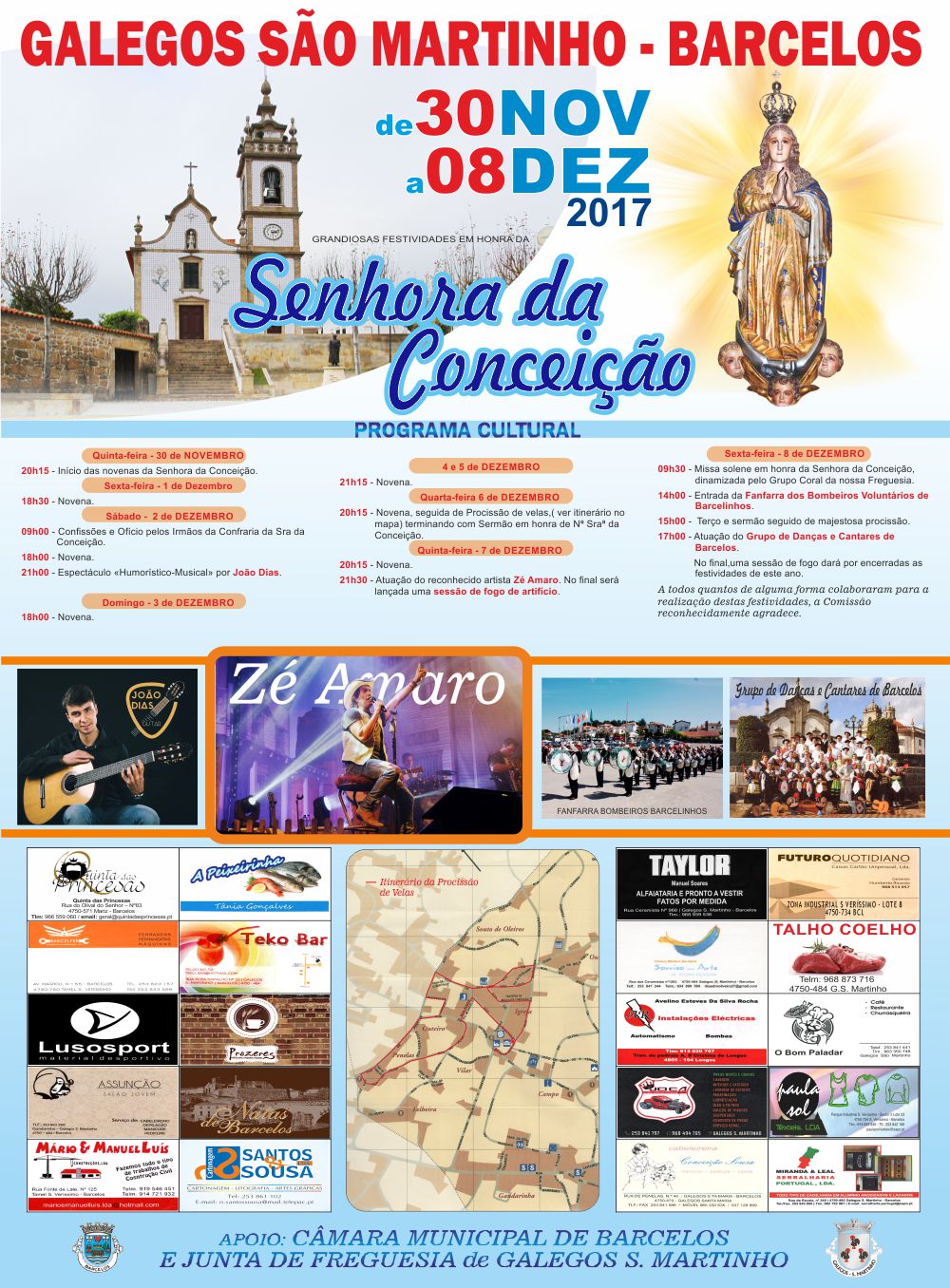 Galegos S. Martinho homenageia por estes dias a Sra. da Conceição. Hoje há procissão de velas, pelas 20h15. O ponto alto da festa é amanhã com o espetáculo de Zé Amaro, marcado para as 21h30. Fernando Pinto, tesouro da Confraria que organiza as festividades, sublinha que foi feita uma aposta forte no cartaz para levar muita gente a Galegos S. Martinho: "Este é o último dos três anos de mandato da confraria e apostámos no Zé Amaro para termos 'casa' cheia. Optámos trazer um artista de grande calibre para enchermos o adro da nossa igreja".