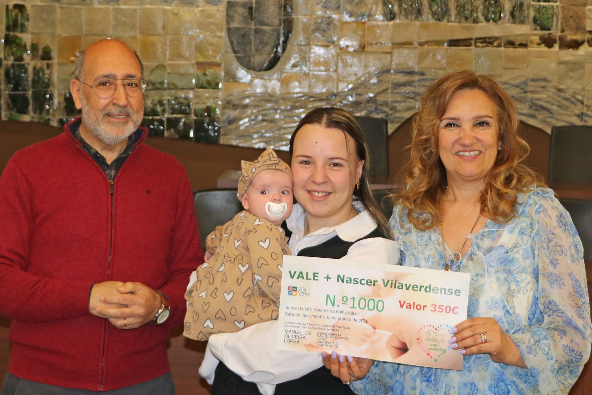 A Câmara de Vila Verde assinalou hoje a atribuição do milésimo 'Vale + Nascer Vilaverdense', uma iniciativa criada pelo Município para apoio e incentivo à natalidade, destinada a residentes no concelho e que tem revelado uma adesão com tendência de crescimento contínuo.
